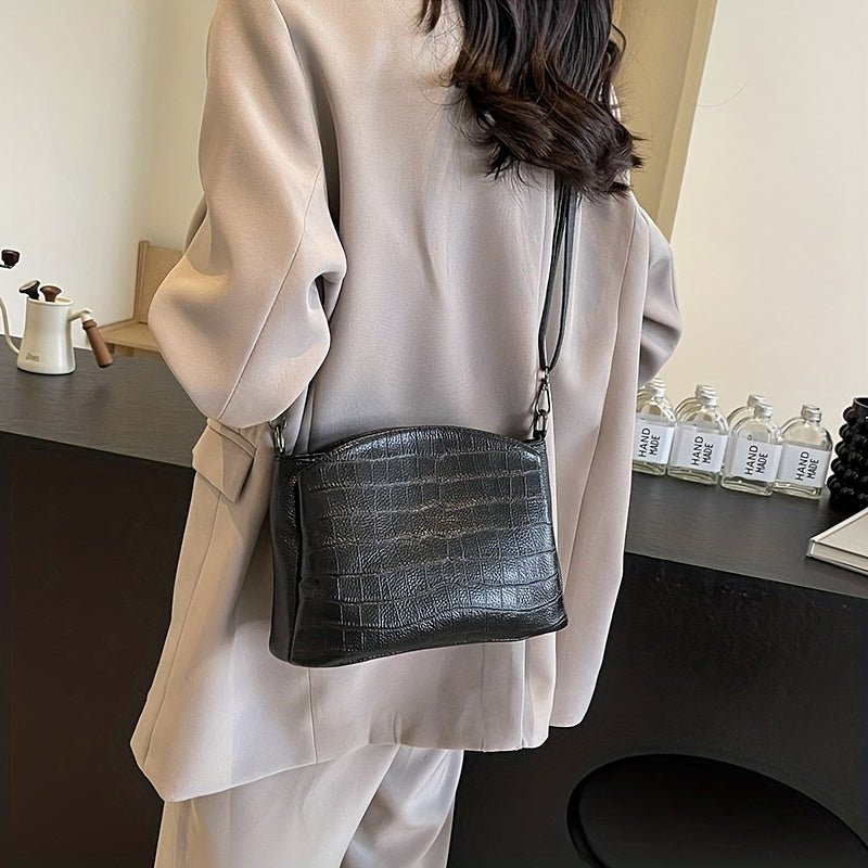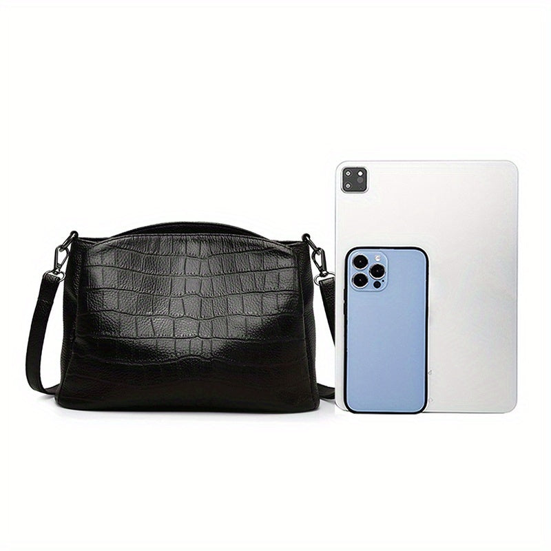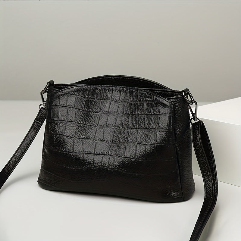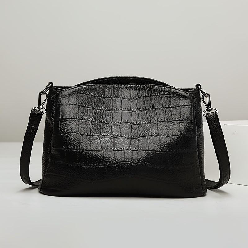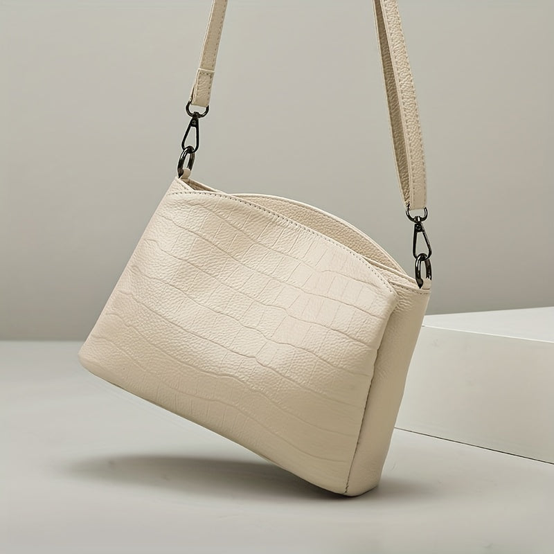 • Design Elegante in Pelle Croc: La finitura in pelle croc testurizzata aggiunge un tocco di lusso mantenendo una forma pulita e minimalista. Questo design raffinato rende la borsa adatta sia per ambienti professionali che per uscite alla moda.