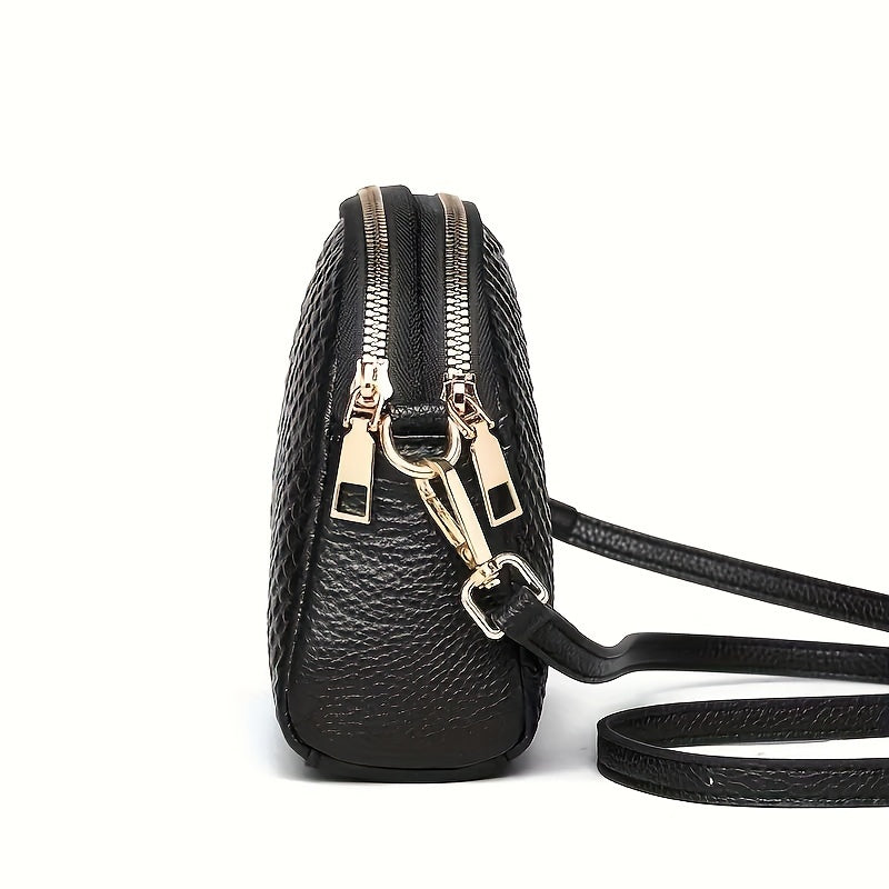 • Organizzazione Spaziosa: L'Eleganza Pura di Vivienne include più scomparti e tasche, permettendoti di tenere i tuoi essenziali ben organizzati. Dal tuo telefono e portafoglio a piccoli accessori, tutto ha il suo posto, così sei sempre pronto per qualsiasi occasione.